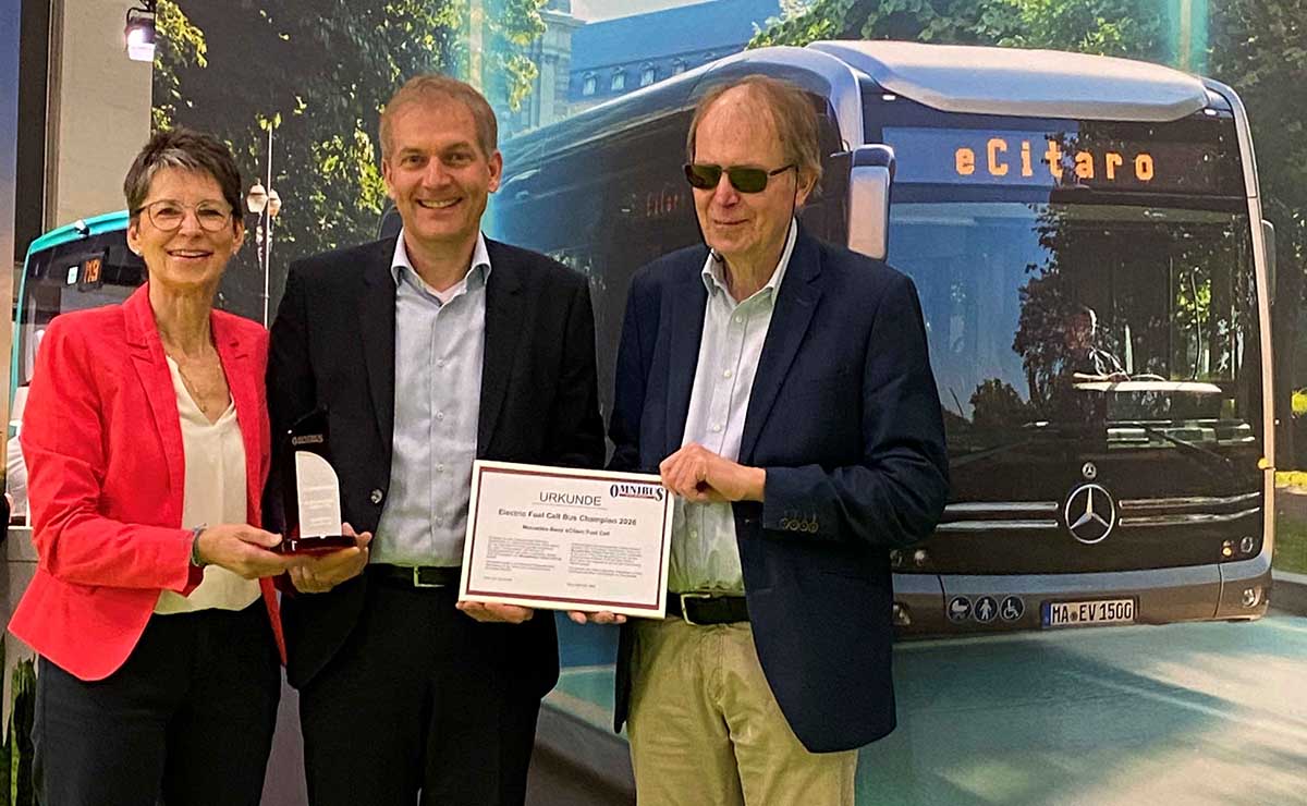 El Mercedes-Benz eCitaro fuel cell fue premiado en Alemania como el mejor bus a hidrógeno de 2026, destacándose por su autonomía, eficiencia y tecnología.