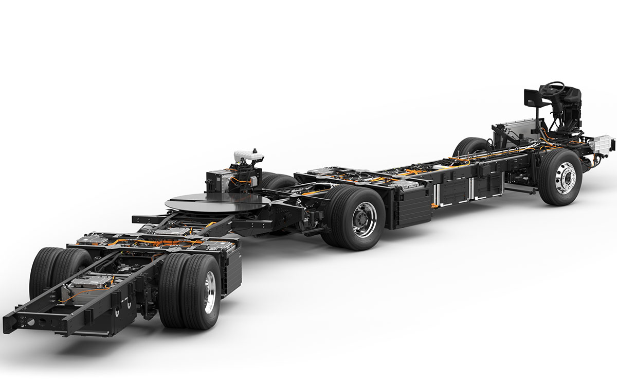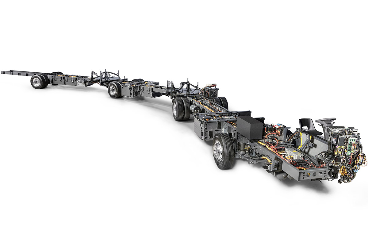 El Volvo BZRT 100% eléctrico está equipado con dos motores de 200 kW, que suman un total de 400 kW, equivalentes a 540 CV. El chasis puede alojar hasta ocho baterías, con una capacidad total de 720 kWh. El motor eléctrico se ubica en la sección central, bajo el piso, lo que garantiza una mejor distribución del peso y un equilibrio dinámico. Las baterías también se ubican en la parte inferior del chasis, lo que permite carrocerías con un habitáculo completamente abierto.