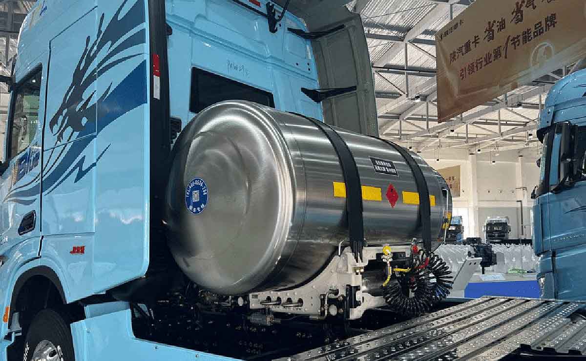 En lugar de los clásicos depósitos de diésel en los laterales del chasis, el camión a gas más potente del mundo cuenta con un gran cilindro de gas con capacidad para 1.500 litros, que pueden satisfacer fácilmente las necesidades de los escenarios de logística de larga distancia debido a una autonomía de hasta 1.400 km.