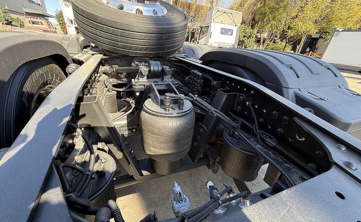 Por otra parte, y para aumentar el confort y la seguridad en ruta, el chasis cuenta con suspensión trasera neumática con regulación de altura desde la cabina (con un intuitivo control remoto), eje de tracción sin reducción de cubos y relación de diferencial 2,846:1 que optimiza el consumo de combustible, si bien hay disponible otras relaciones opcionales (3,083:1, 3,364:1 y 3,7:1).