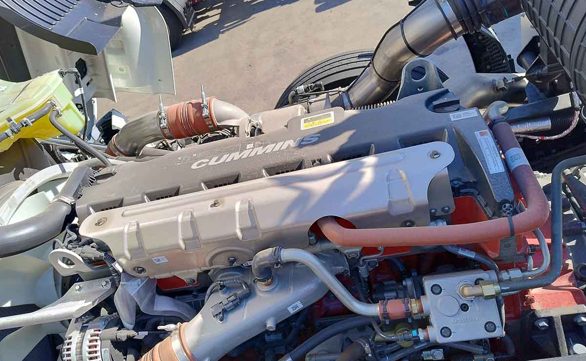 Debajo de la cabina del Auman R 2443, se encuentra el eficiente motor Cummins ISG diésel de 6 cilindros en línea de 11,8 litros e inyección Common Rail que eroga 430 CV y 2.200 Nm. Con una insonorización que debería mejorar pese al buen aislante a la vista, se acopla a una caja ZF TraXon AMT automatizada de 12 marchas (+4 reversas) con pasaje manual mediante las mencionadas levas, una innovación exclusiva en el mercado argentino. ¿Por qué no se ve el comando? Es una simple ruedita ubicada en la parte baja de la consola.