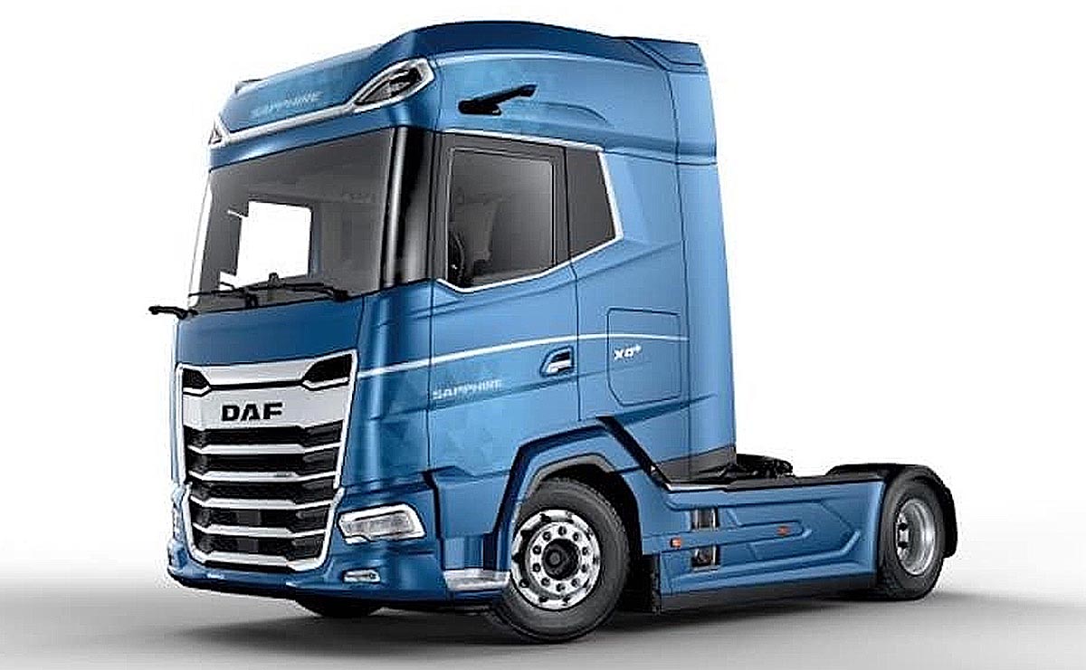 Hoy, y luego de promocionar la renovada gama 2025 del DAF XG+, con un motor modernizado y un equipamiento más rico, el fabricante de pesados decidió anticipar a su red de concesionarios su nueva edición limitada denominada Sapphire (zafiro) y que estará disponible en un máximo de 100 unidades.