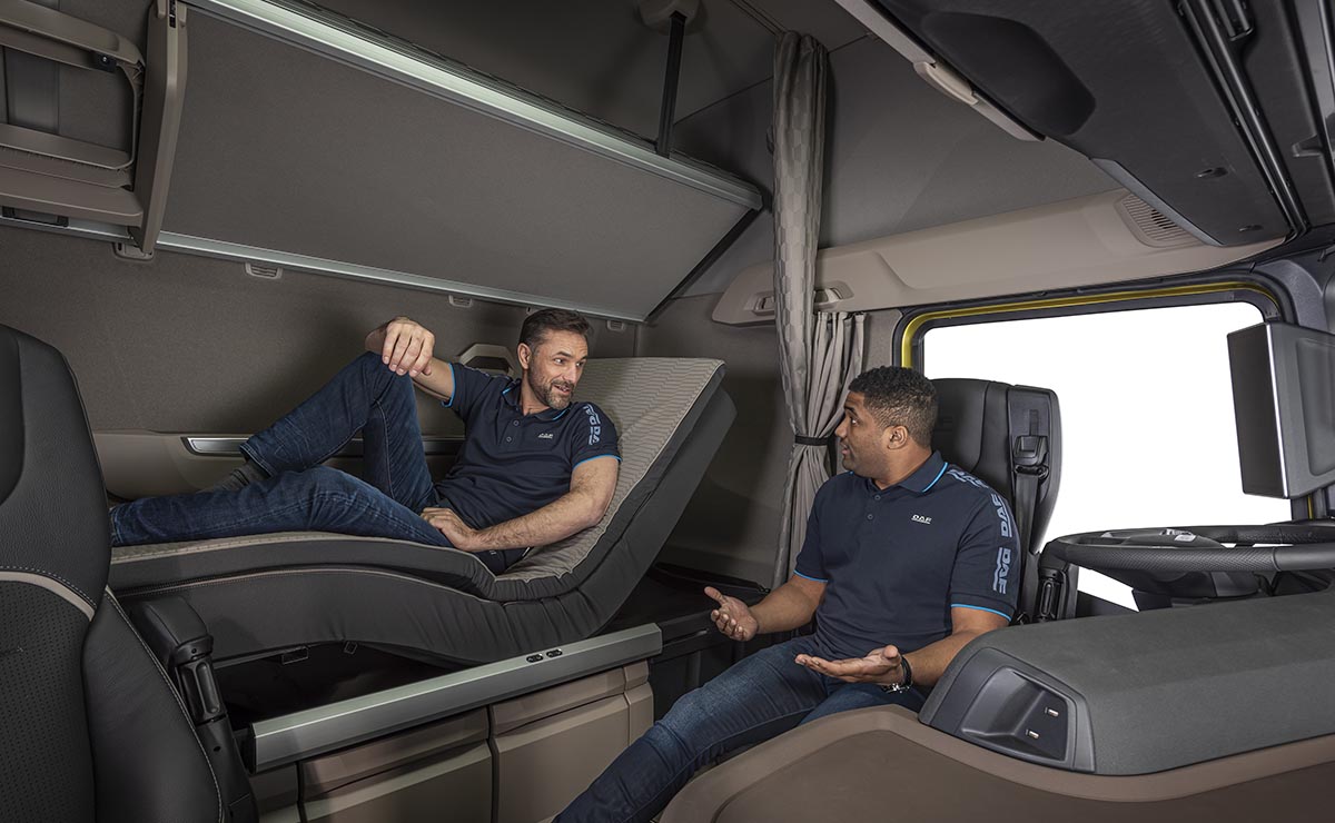 Además de un muy notorio rediseño, que busca líneas armoniosas y una eficiencia aerodinámica superior, la cabina del DAF XG+ ahora cuenta con un frontal de 160 mm extra para permitir una menor resistencia al viento. Esto permitió que la cabina ofrezca 330 mm más de longitud adicional en la parte trasera, para brindar mayor espacio y un volumen total de 12,5 m3.