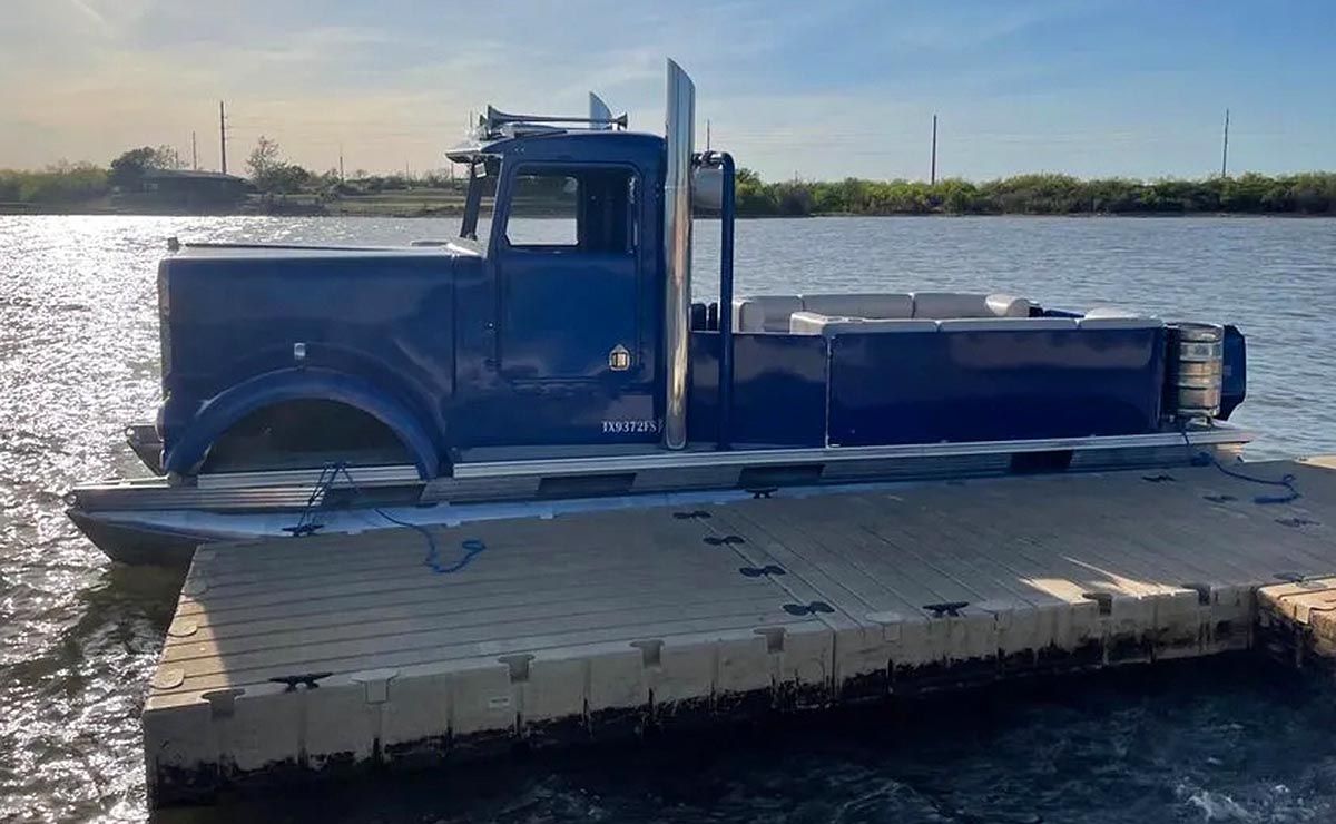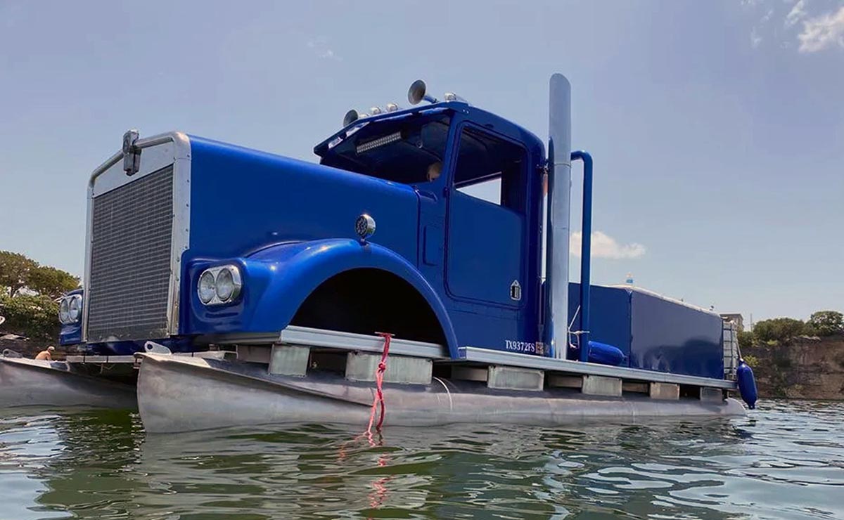 Y es nada menos que un modelo de 1976 de este camión el que sirvió de base para el proyecto que tenía en mente Mickey Houk, un ciudadano oriundo de Texas, Estados Unidos, que decidió ir más allá y crear un barco especial con la cabina de un pesado pero totalmente funcional.