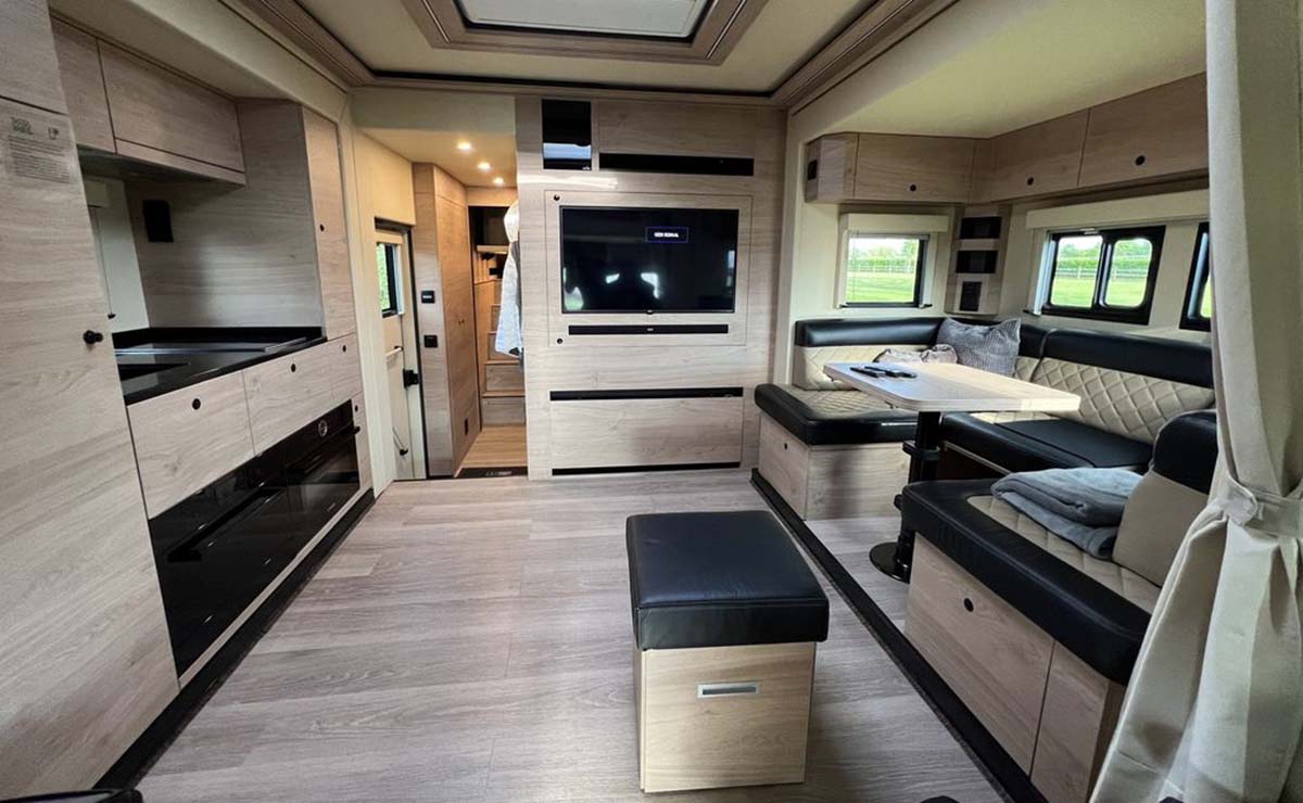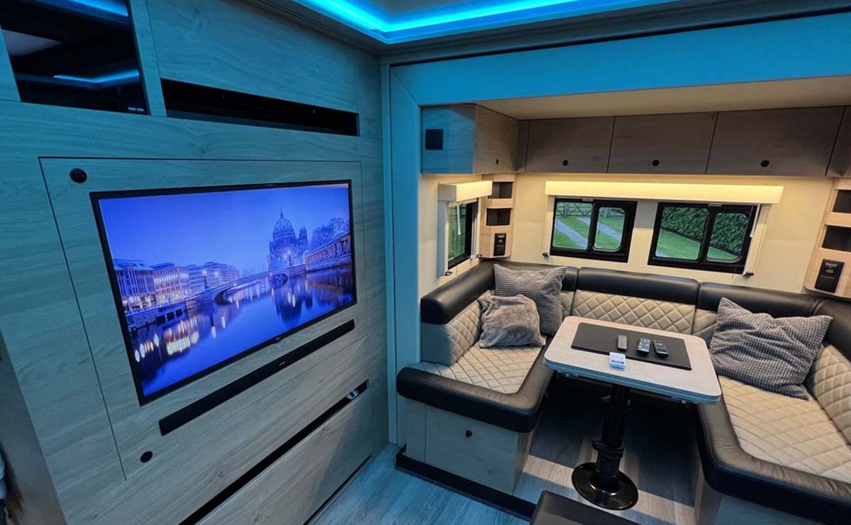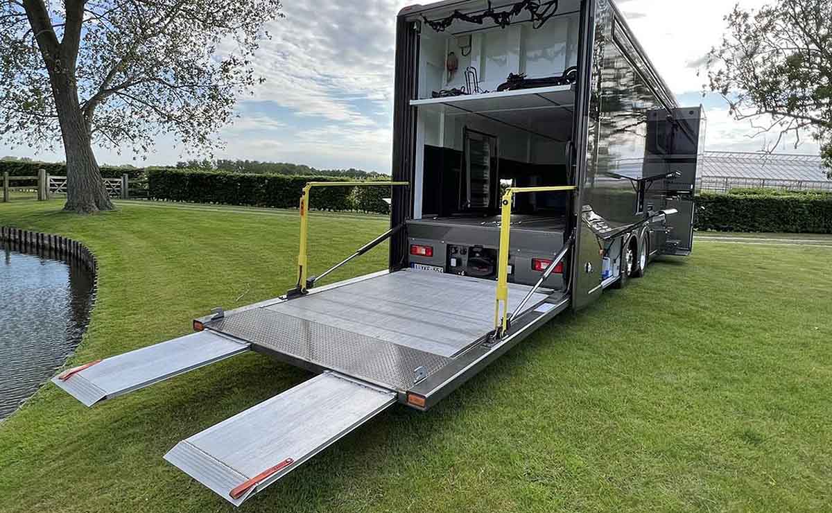 Otra de las características más llamativas recae en un novedoso sistema que se está haciendo cada vez más popular entre las autocaravana de grueso tamaño: una rampa hidráulica controlada a distancia que puede albergar un vehículo de baja altura, es decir, un deportivo.