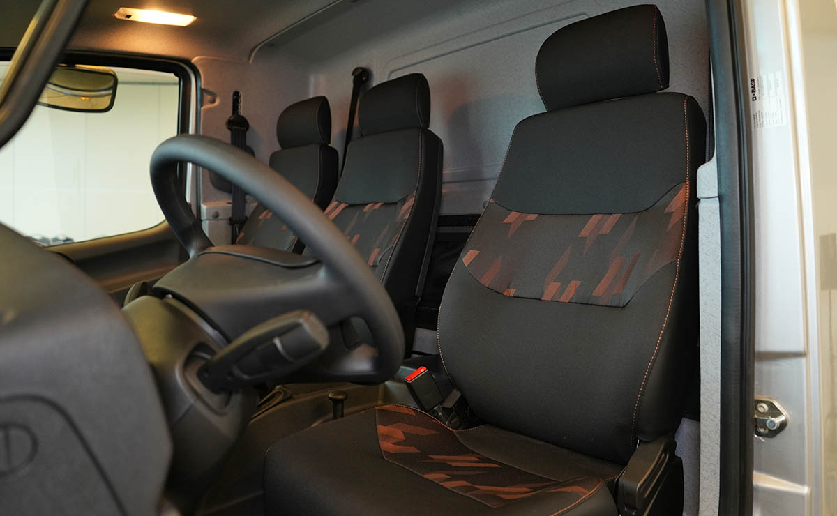 Es por eso que se aprecian cambios a nivel chasis. Uno de ellos es la renovada plataforma de carga siendo ahora la más grande del mercado, con hasta 40 centímetros extra frente a la competencia. Otras se ven en la ficha técnica: las mayores longitudes de carrocería del segmento, hasta 7,13 metros (5,2 carrozables), cifras que se traducen en mayor productividad.
