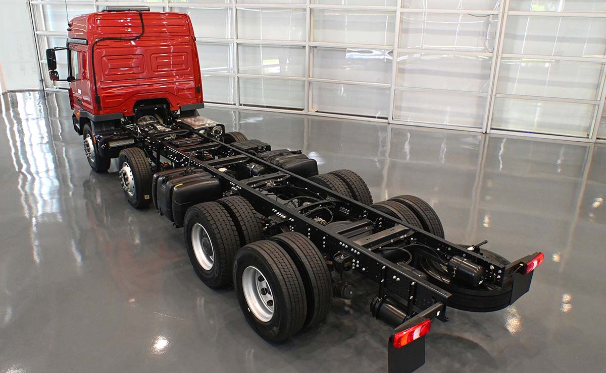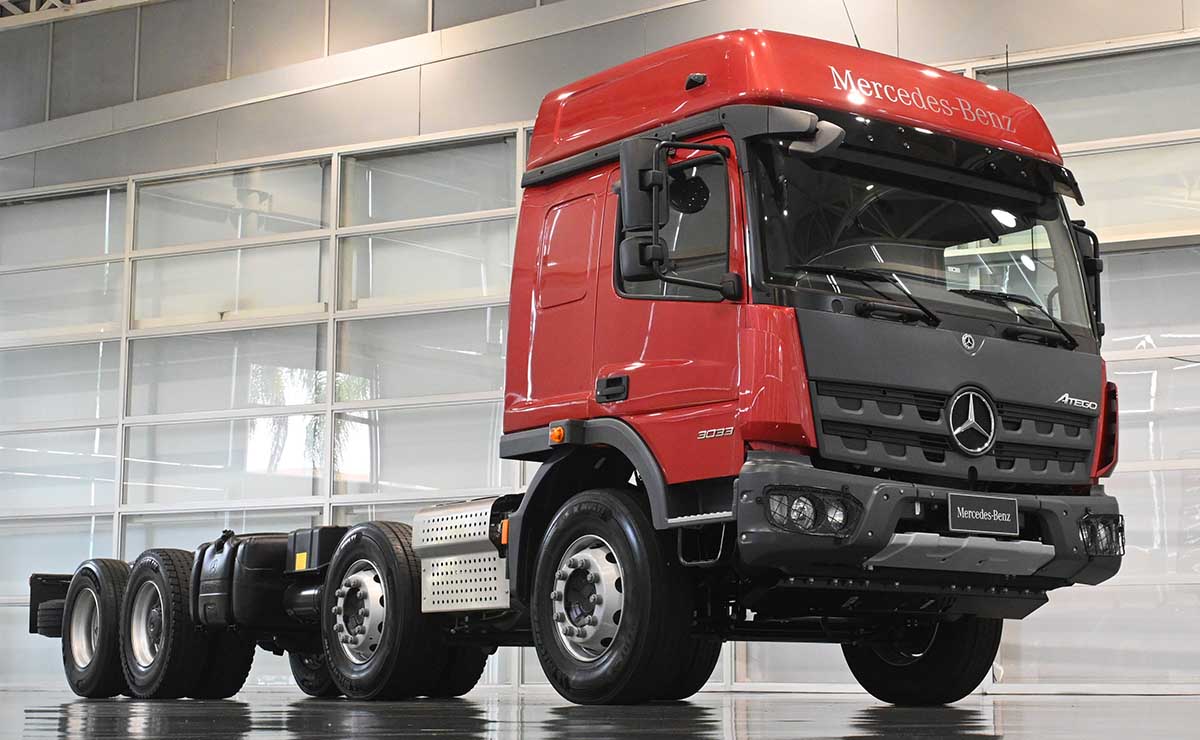 La nueva configuración Mercedes-Benz Atego 3033 8×2 con Paquete Robustez y eje trasero con reducción de cubo se produce en el Custom Tailored Center (CTC), el centro de personalización de vehículos de Mercedes-Benz en su fábrica de São Bernardo do Campo (SP).