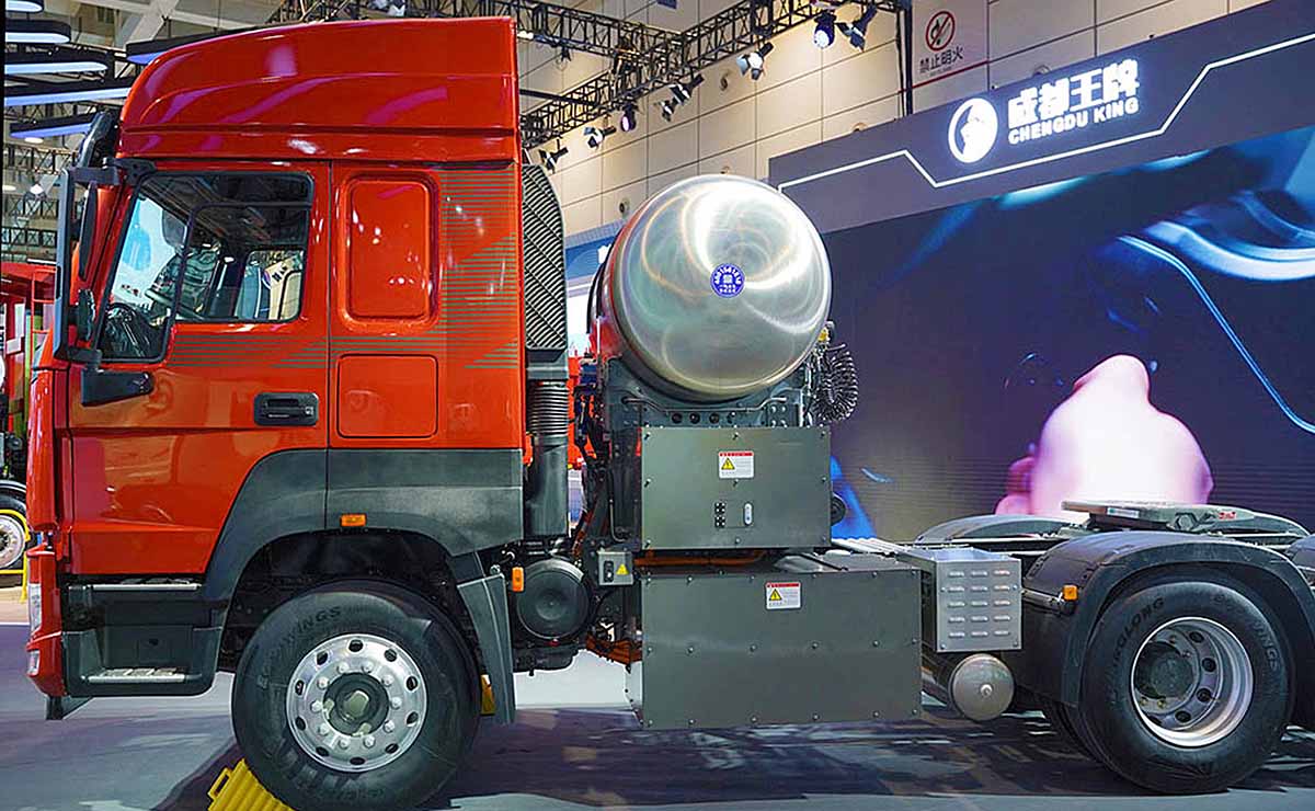 Está impulsado por un motor Weichai alimentado a gas natural licuado (LNG) que se acopla a un sistema eléctrico, una alternativa que poco a poco se va utilizando en mercados donde la electrificación total aún presenta desafíos operativos o de infraestructura.