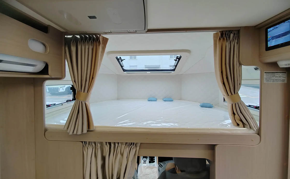 En cuanto a la comodidad, la zona de estar puede alojar hasta 4 personas mientras se conduce, es decir, hasta 6 en total. Sin embargo, dado que solo ofrece una cama en la parte delantera y una cama compartida en el área de recepción, sigue siendo adecuado para que viajen y experimenten un pequeño número de personas. Por ejemplo, el uso de una familia de tres o parejas será más cómodo.
