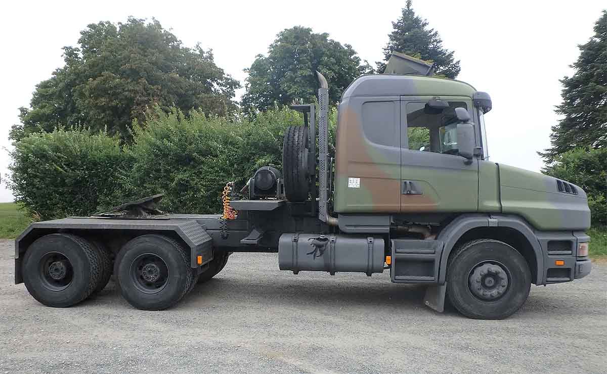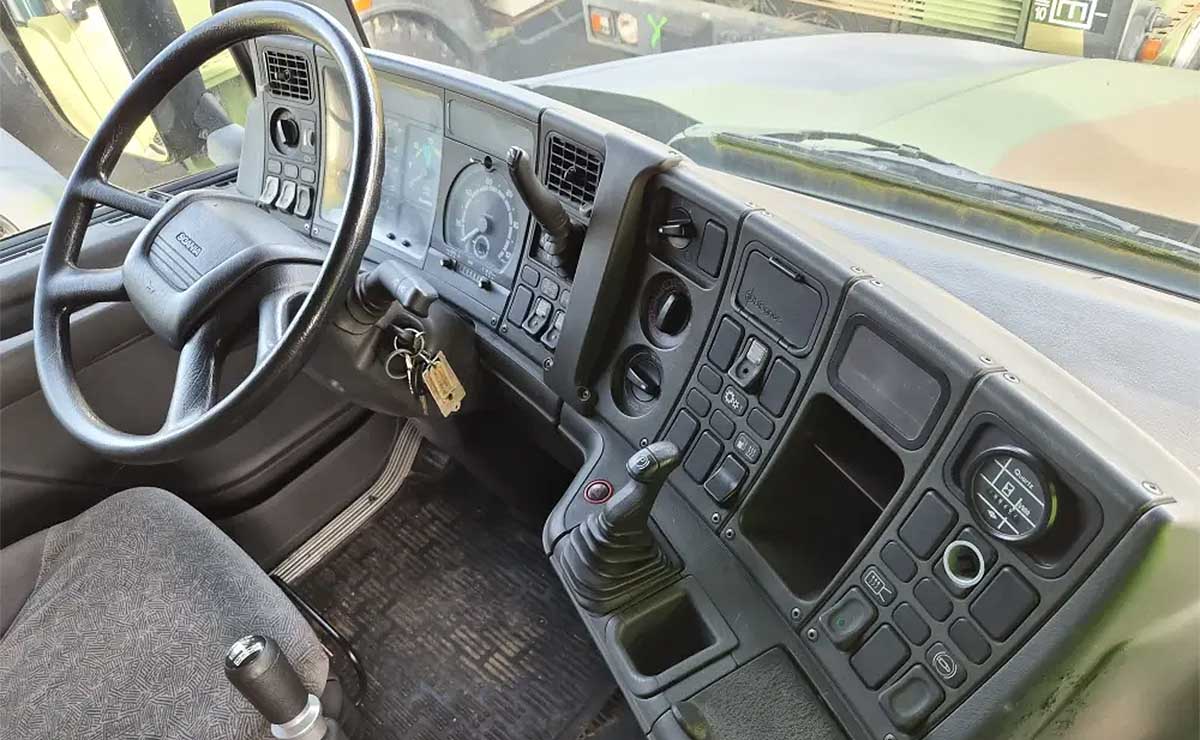 No se trata de cualquier camión usado, sino de un modelo robusto, diseñado para uso intensivo y pensado para tareas de peso pesado en el escenario militar europeo. Sí, un Scania V8 de la vieja Serie 4 con trompa, de los últimos que se conocieron antes de la llegada de la serie PGR.