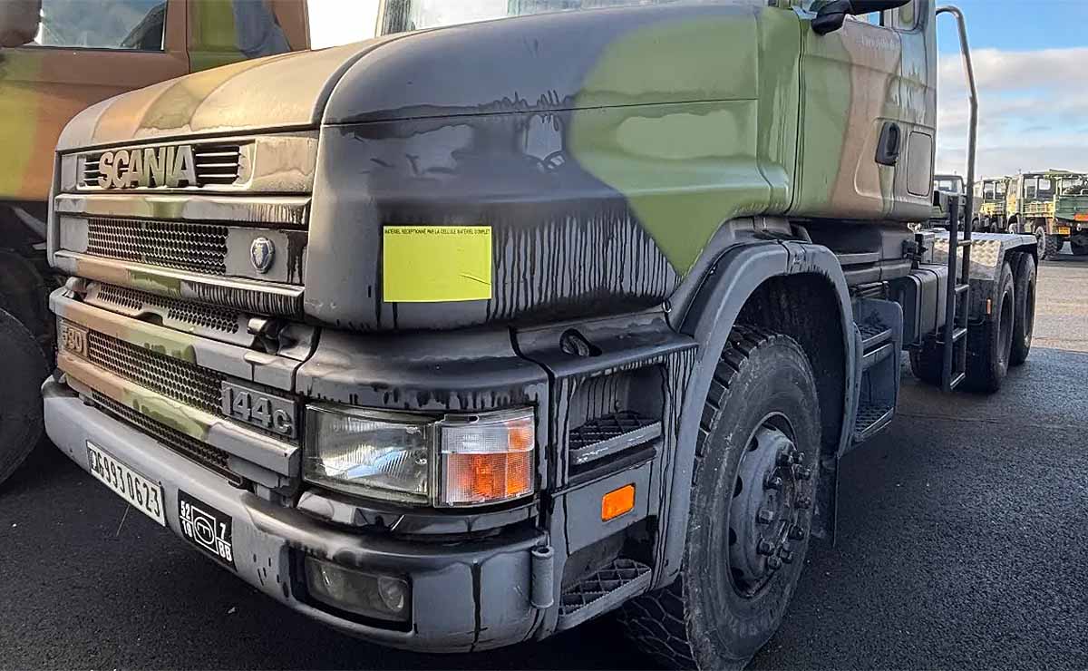 Una Scania V8 en configuración 6×4 militar aparece en una subasta de Francia con un valor de salida muy bajo, un motor legendario y con muy poco uso.