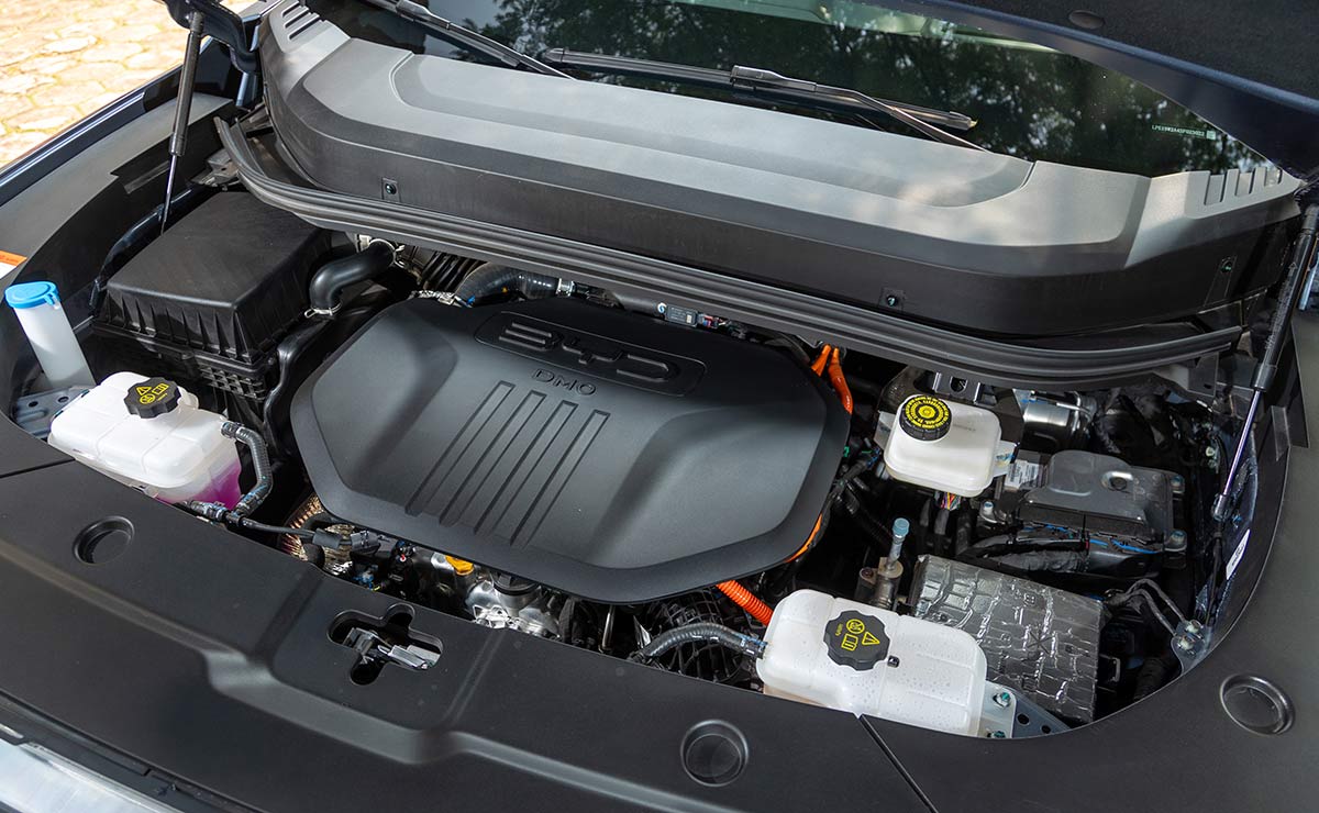 El diferencial más importante de la BYD Shark está en su sistema de propulsión. Se trata de la plataforma DMO (Dual Mode Off-Road), un esquema híbrido enchufable que combina un motor naftero 1.5 turbo con propulsores eléctricos alimentados por una batería de 29 kWh y tracción integral inteligente.
