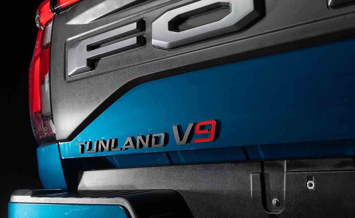 Las dimensiones de la Tunland V9 son más que generosas, con 5.617 mm de largo, 2.030 mm de ancho, 1.905 mm de alto y 3.355 mm de distancia entre ejes. A esto suma un despeje de 240 mm, un peso bruto vehicular de 3.055 kg y una capacidad de carga de 720 kg. Estas medidas hacen que destaque tanto por el espacio interior como en la caja de carga.