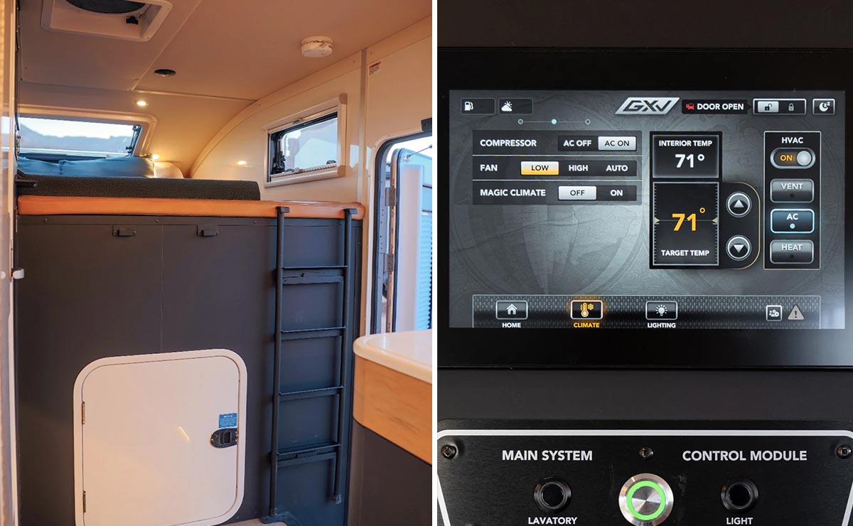 Pero la buena noticia es que salir del asfalto no significa perder energía. El GXV HILT está equipado con un sistema de abastecimiento de 16.8 kWh proveniente de paneles solares de hasta 1.320 W y baterías Lithionics, capaces de alimentar tanto los sistemas de iluminación como los electrodomésticos del interior sin necesidad de enchufes externos. La autonomía está asegurada.