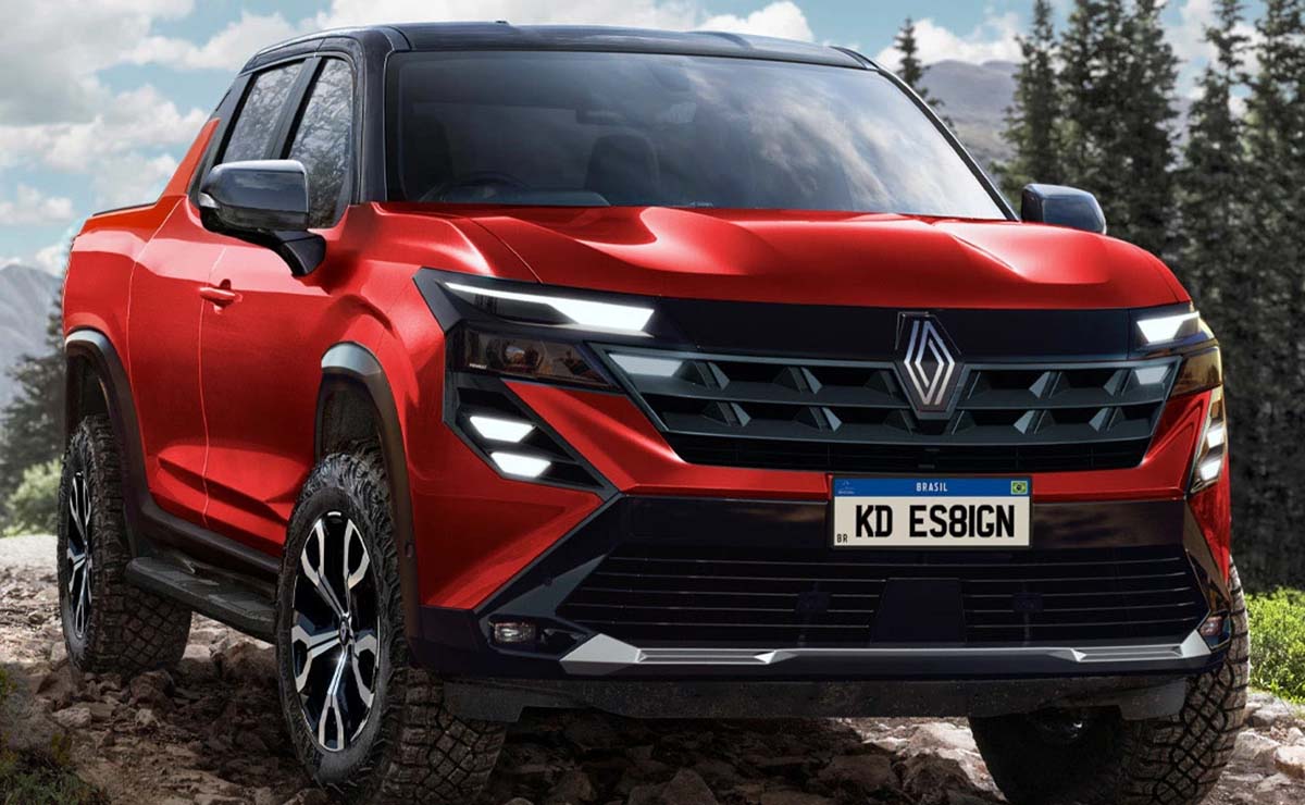 Los renders destacan un frente imponente que integra la moderna identidad visual de Renault, caracterizada por líneas afiladas y formas romboides junto una parrilla prominente. La silueta es la de una pick up de doble cabina, pero con una ejecución dinámica.