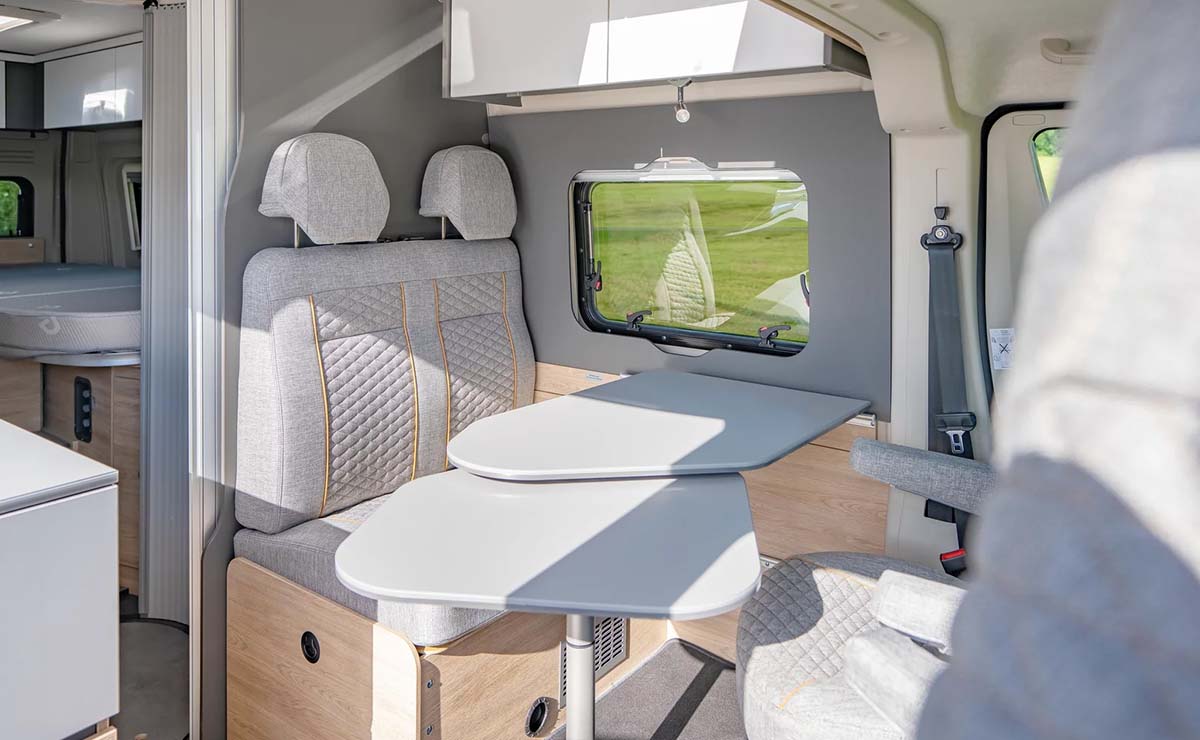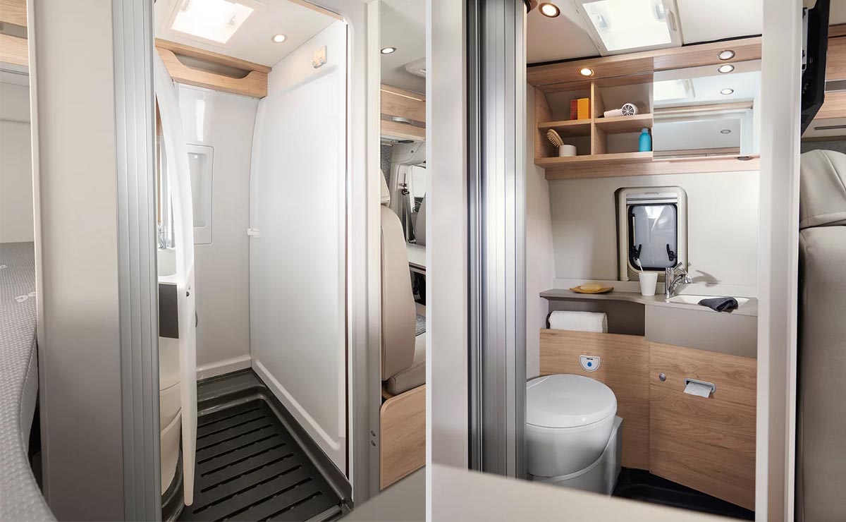 El baño, por su parte, ya no es improvisado y cuenta con ducha, lavabo, WC, mientras que la cocina también es digna de un hogar móvil con fregadero, anafe y nevera de 62 litros (dependiendo de la versión). También hay diferentes armarios para guardar objetos, pack LED interior, mayor número de tomas de corriente repartidas por el interior y calefacción.