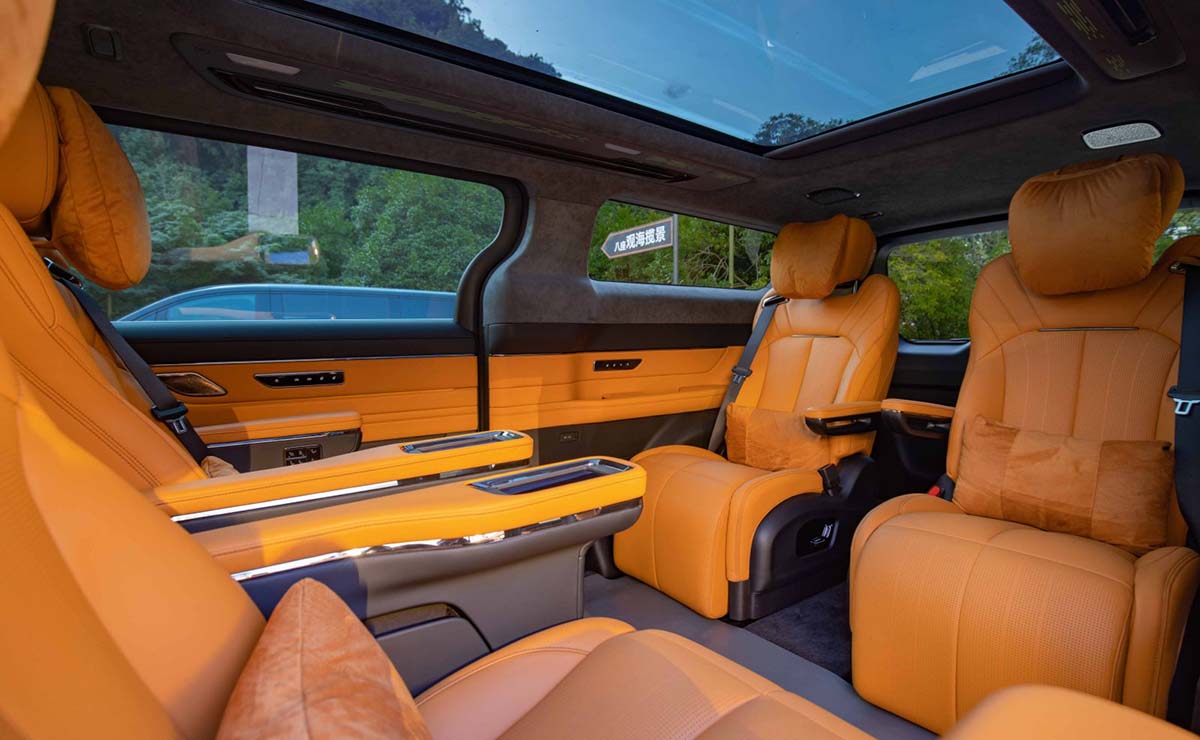 Quien se ubique en cualquiera de las butacas del Geely L380 bajo licencia de LVEC en China se sentirá como en el sillón de su casa. O hasta más cómodo. Se trata de asientos sumamente ergonómico, con ajustes eléctricos, calefacción y ventilación, pantallas para configurar el sonido y la climatización y otra para la multimedia, además de conexiones USB.