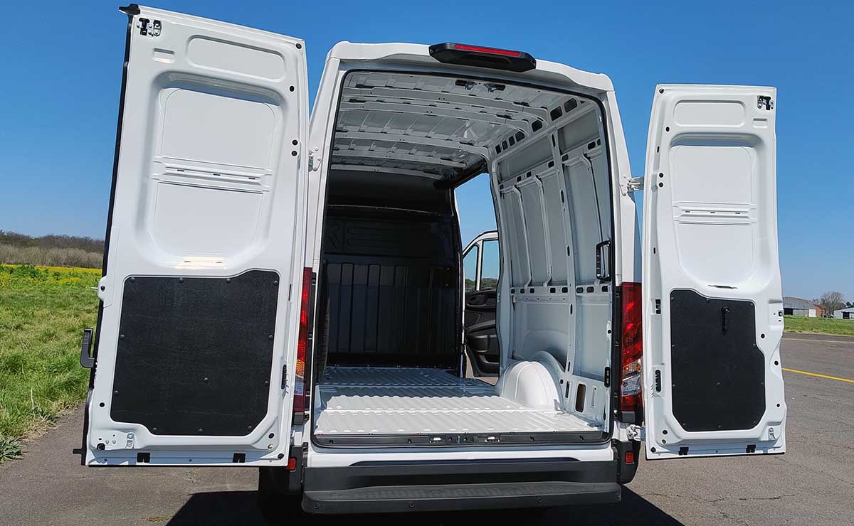 La calidad se ve realmente mejorada respecto a la generación anterior, tanto dentro de la cabina como en el espacio de carga. Aquí, esta versión ofrece una gran puerta lateral corrediza del lazo derecho, la clásica doble hoja trasera con apertura a 270° (con un escalón reforzado para un mejor acceso) y 12 m3 de volumen junto a una capacidad de carga de solo 1.000 kg debido a que tiene un solo eje trasero.