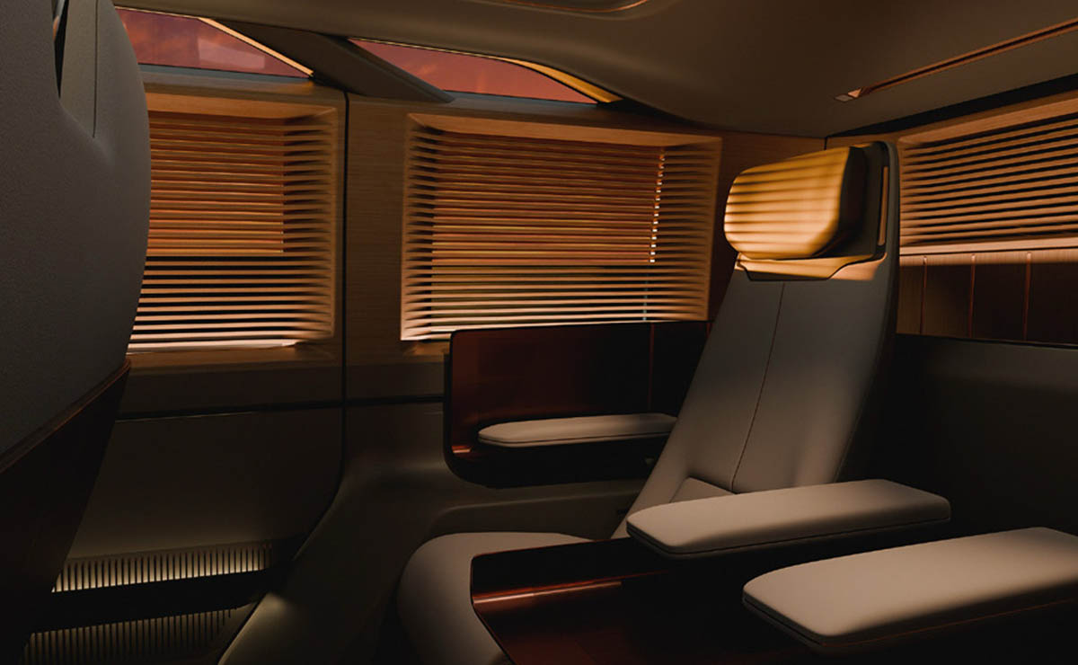 El habitáculo está pensado para una sola cosa: que los pasajeros disfruten el viaje más que el destino. Es por eso que cuenta con asientos enfrentados o pantallas ocultas, todo en un ambiente de serenidad absoluta que completa la escena. Muchos pensarán que es una especie de spa sobre ruedas, pensado para ejecutivos, celebridades o simplemente para quien no tenga apuro.